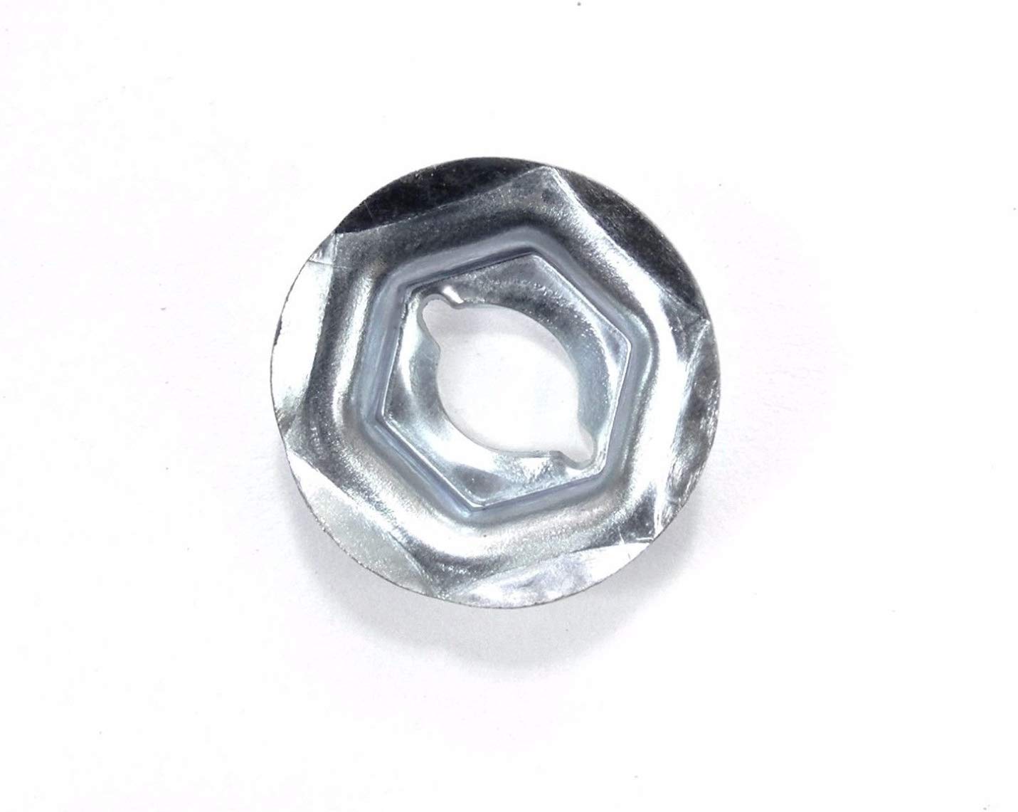 New metric emblem & trim thread cutting PAL nuts. Used for emblems, trim, bezels, chrome, lights, etc. Fit M6.3mm Studs. 11mm Hex. 18mm Flange Silver Zinc Finish. Qty- 25